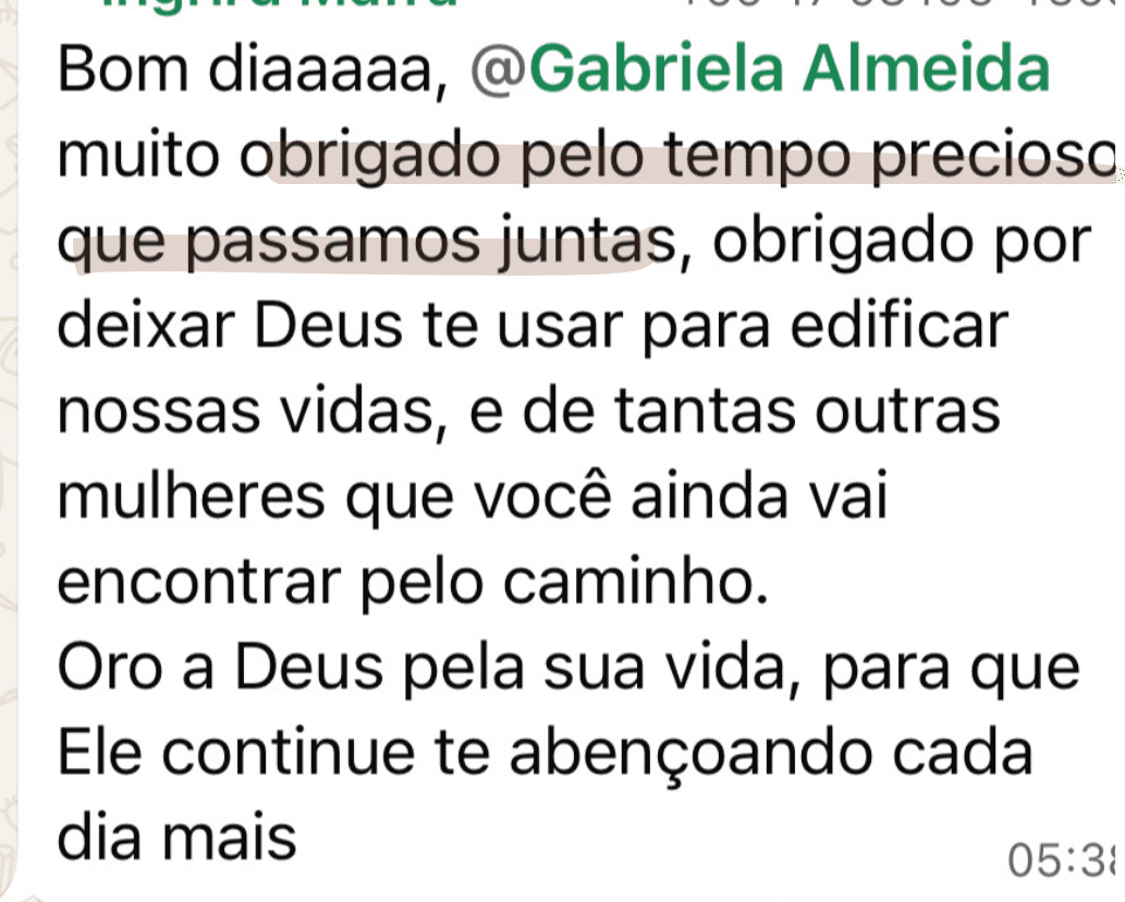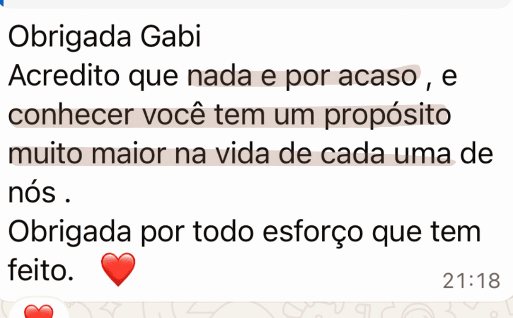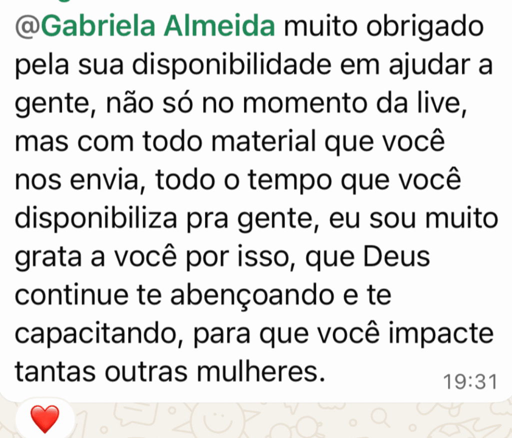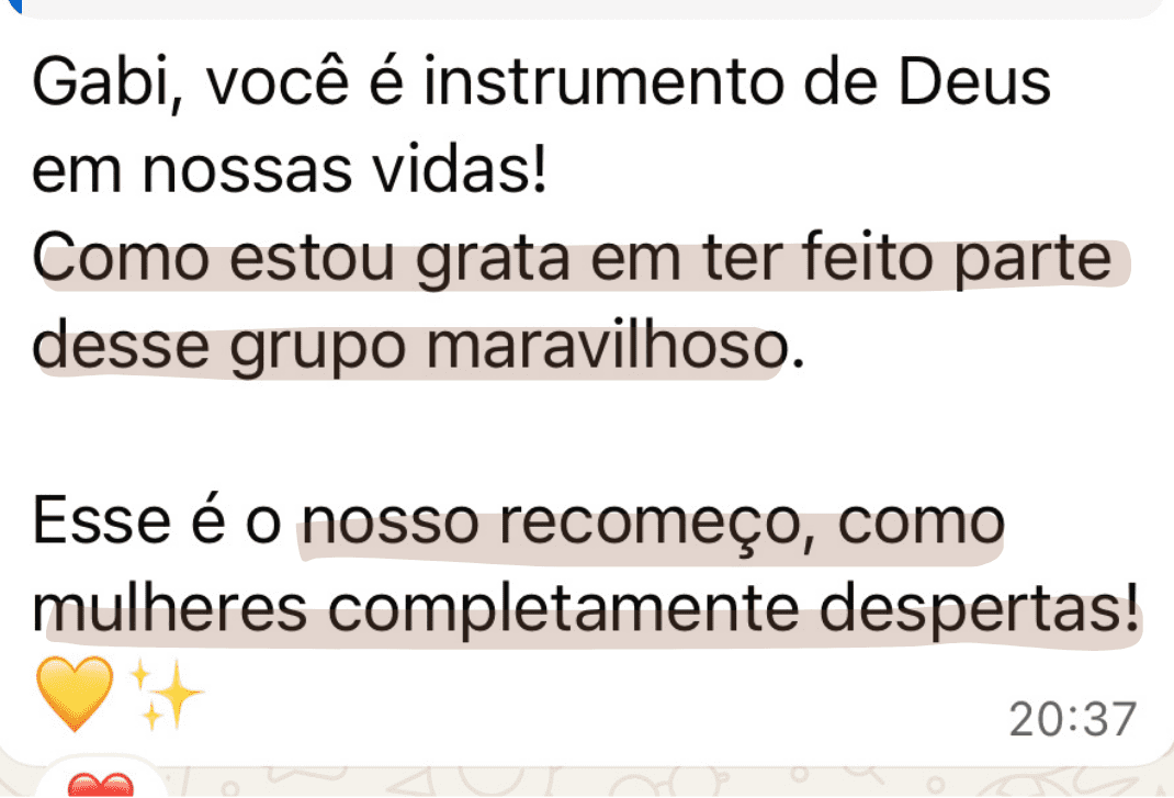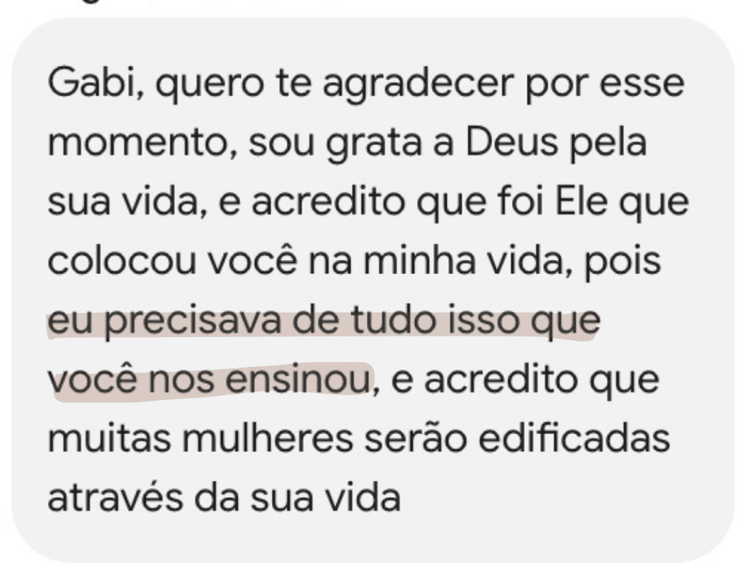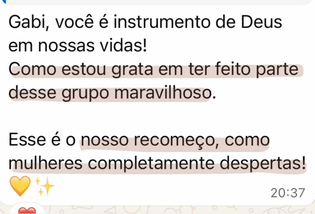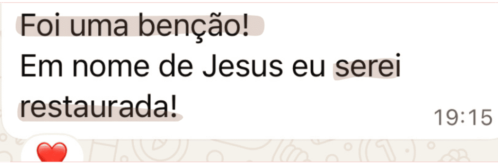 Você começa a se sentir mais leve, aprende a se expressar melhor e se reconecta com quem Deus te chamou para ser.