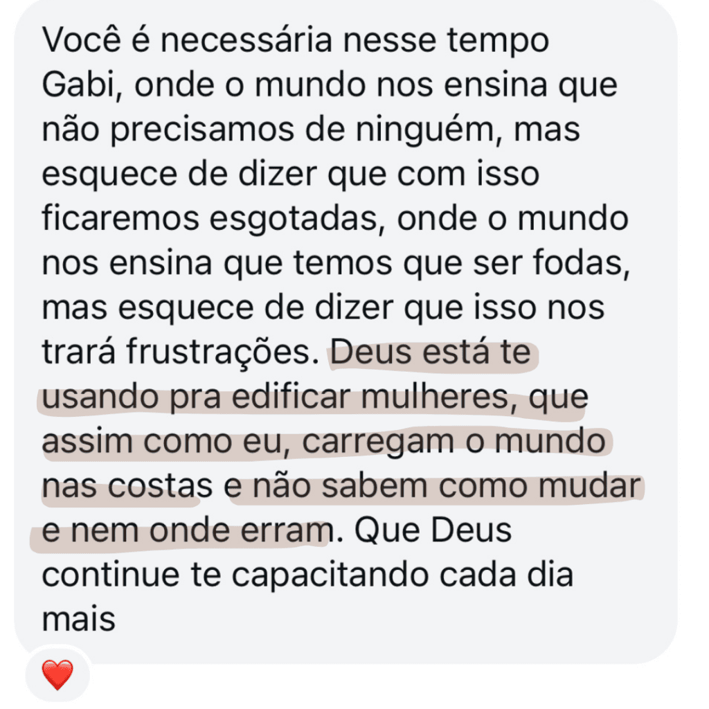 Essa força constante foi cansando. Foi me afastando de mim, dos meus relacionamentos e até de Deus. Eu seguia em frente, mas por dentro sentia um vazio difícil de explicar.